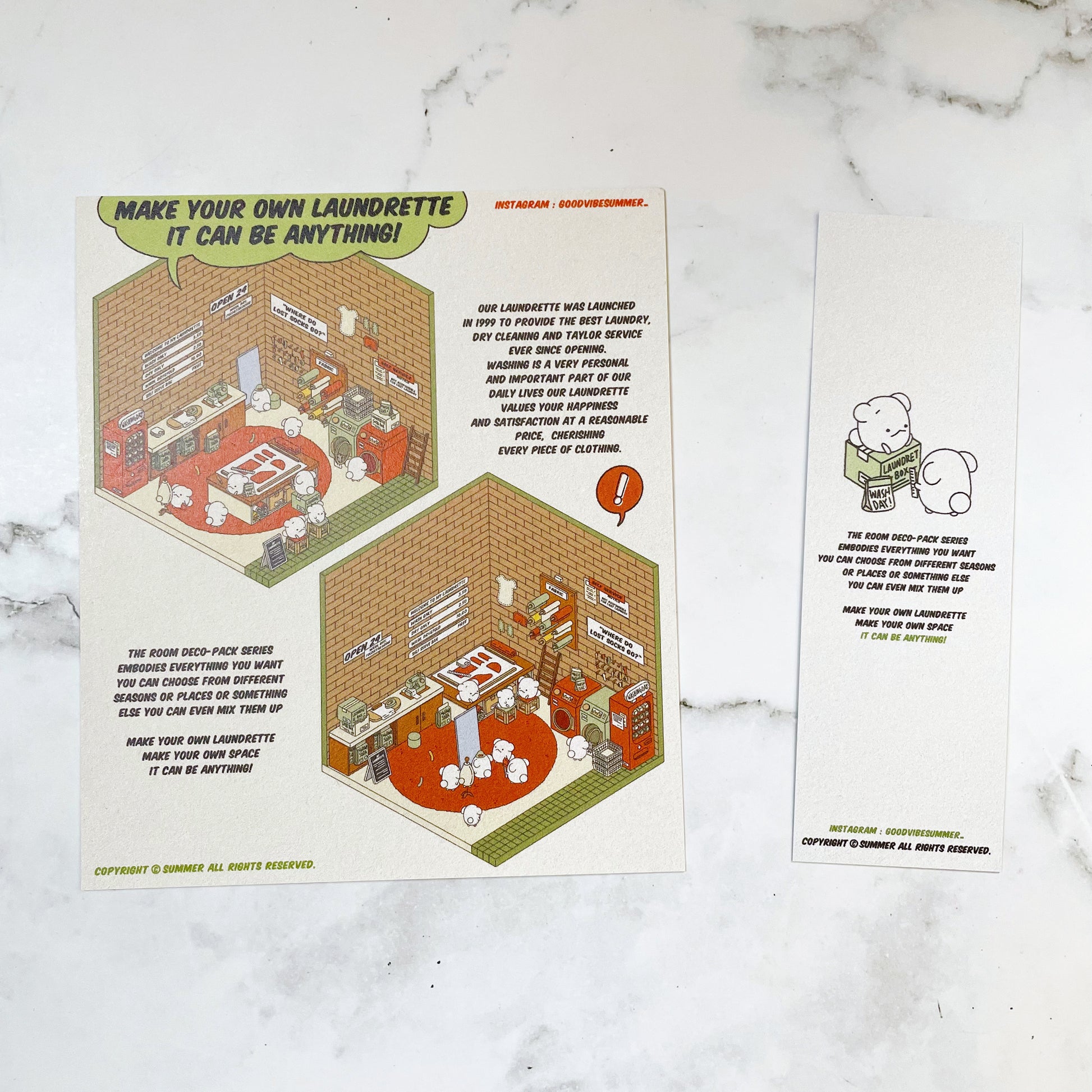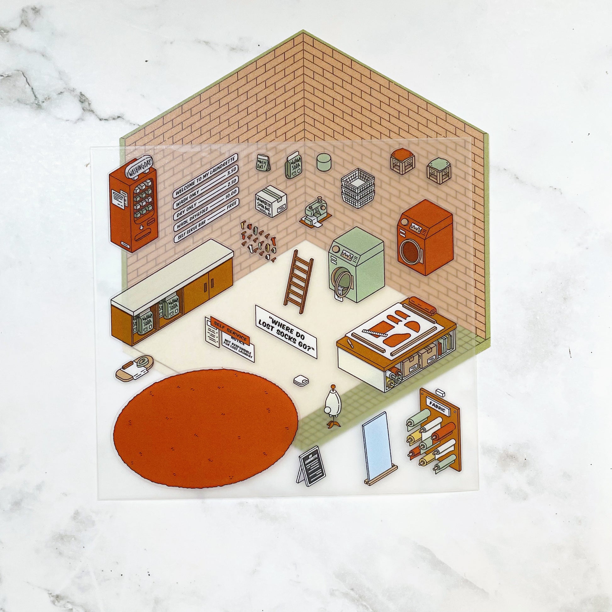 Create your own sticker laundromat! Get creative with this sticker kit by designing your own interior space. These stickers are very high quality with a velvet coating that make these feel extra luxurious to the touch.