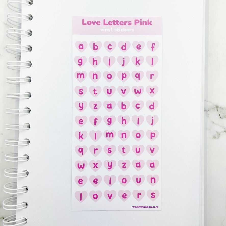 Love Letters Pink vinyl sticker sheet