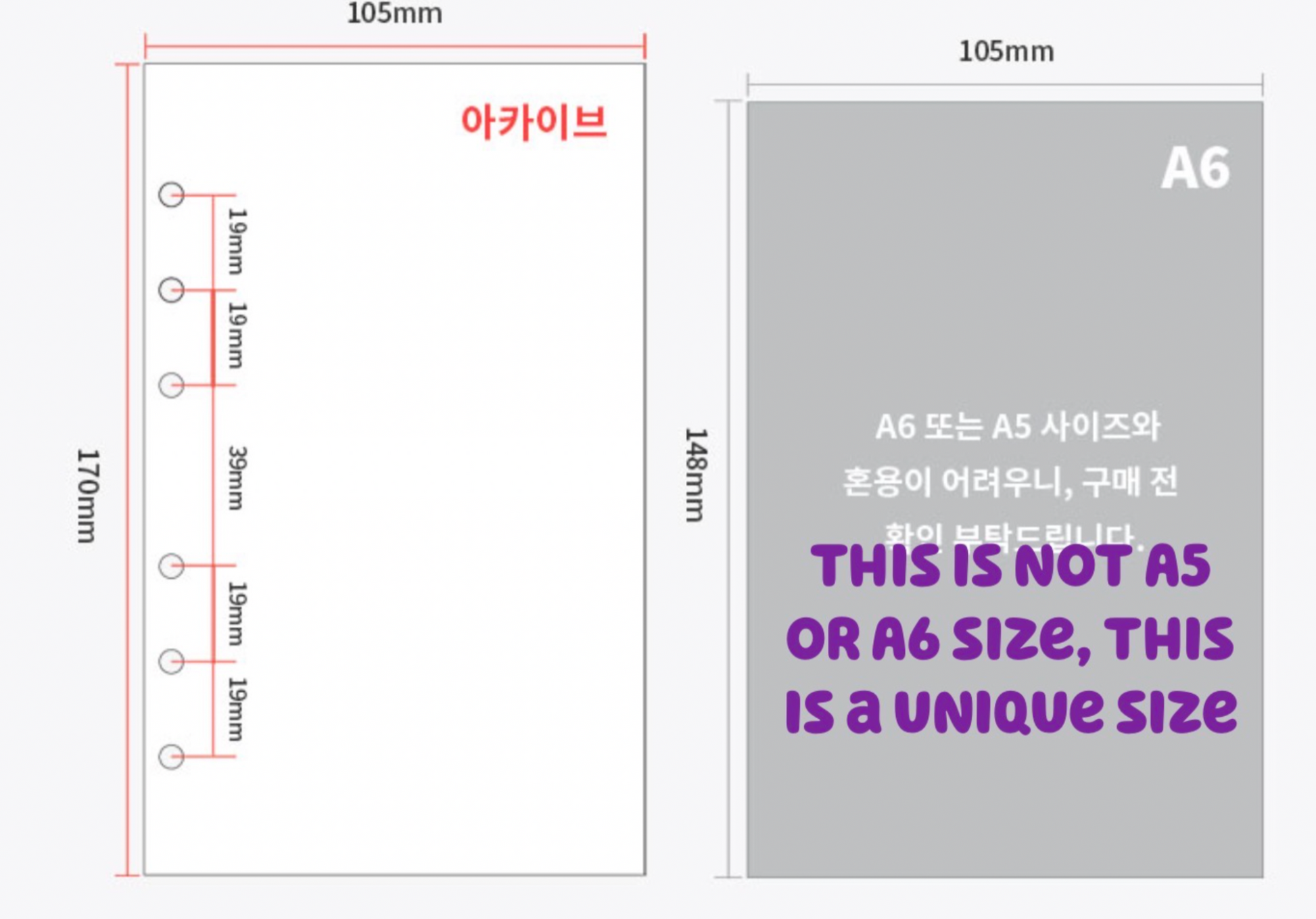 All size specs are in the listing photos ( this is not A5 or A6 size, this is it's own unique size)