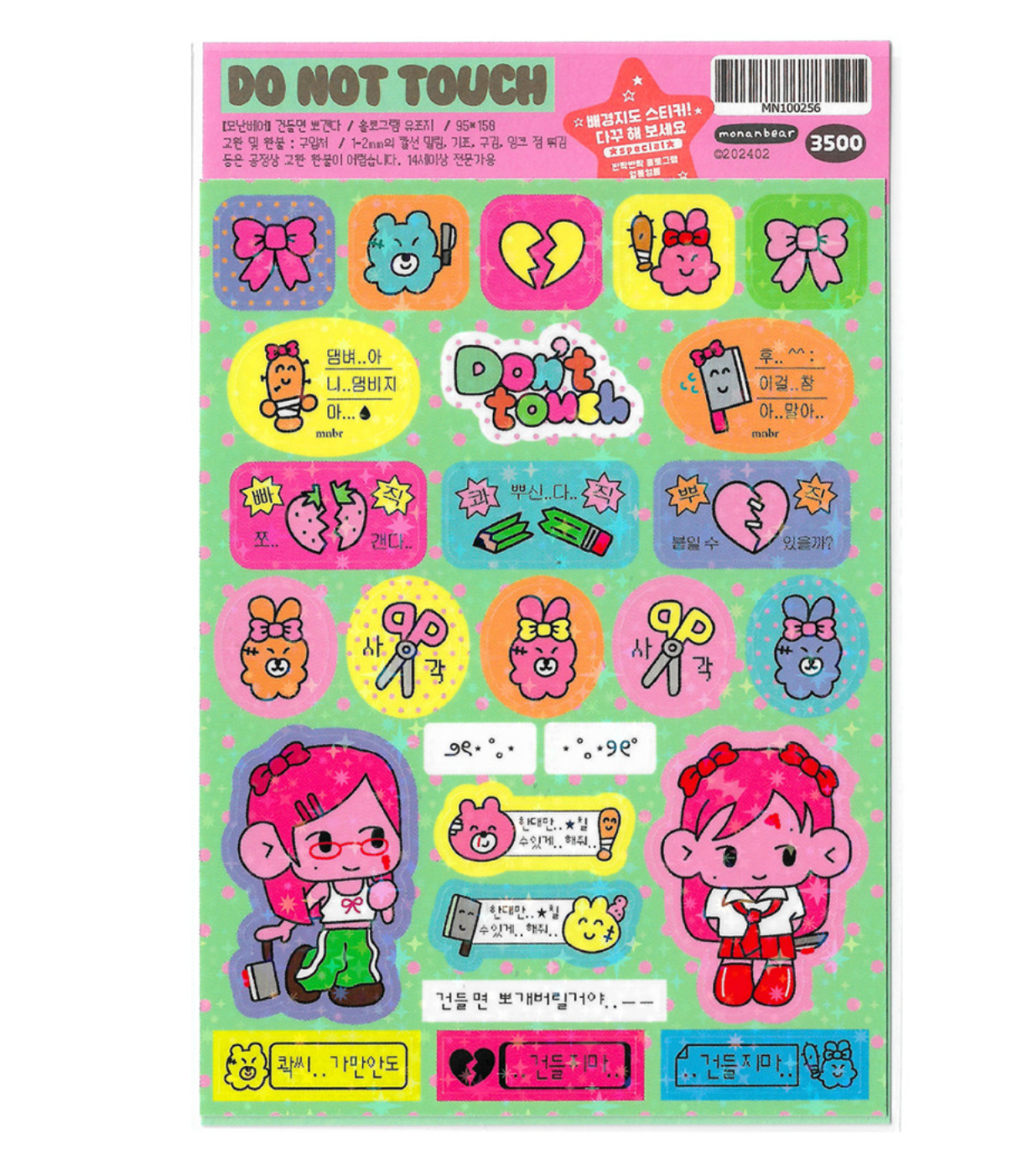 Monan Bear Do Not Touch sparkle sticker B137
